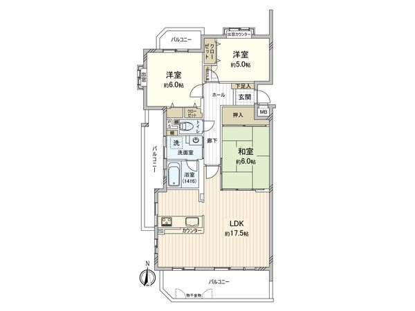 3LDK / 60.2㎡ / 1993年12月築 / 7階