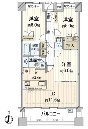 3LDK / 71.51㎡ / 2004年05月築 / 5階