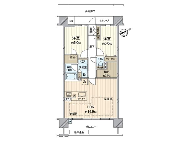 2LDK / 56.56㎡ / 1994年11月築 / 6階