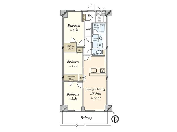 3LDK / 92.88㎡ / 2002年02月築 / 3階