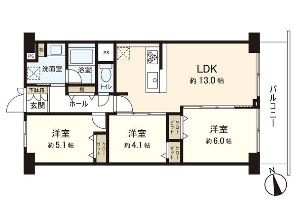 3LDK / 71.14㎡ / 1995年09月築 / 6階
