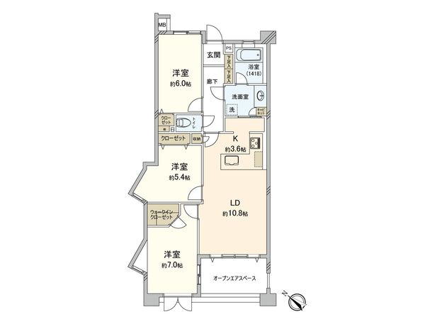 3LDK / 72.8㎡ / 1996年03月築 / 3階
