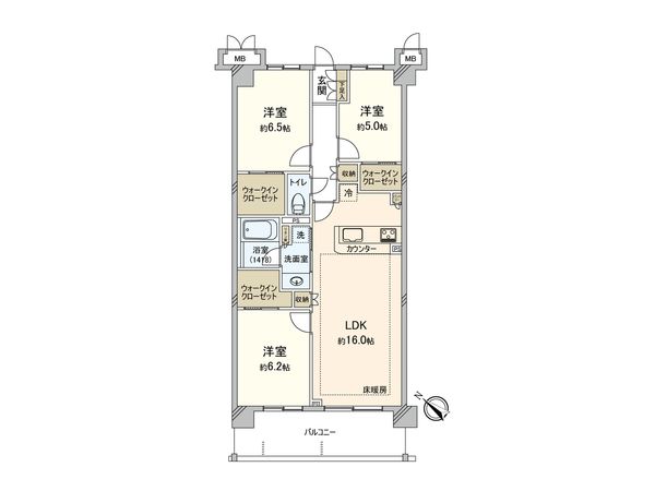 3LDK / 76.26㎡ / 2015年11月築 / 6階