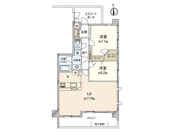 2LDK / 71.03㎡ / 2004年02月築 / 8階