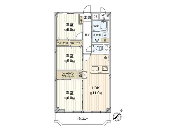 3LDK / 62.5㎡ / 1972年06月築 / 7階