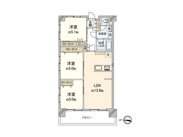3LDK / 80.49㎡ / 2001年08月築 / 1階