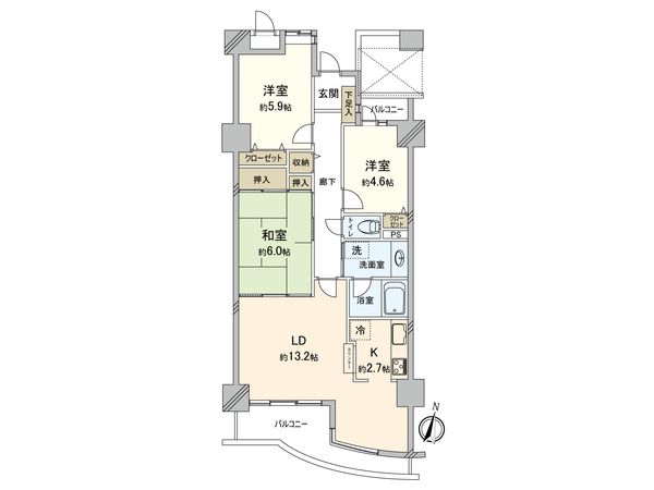 3LDK / 60.9㎡ / 1991年12月築 / 9階