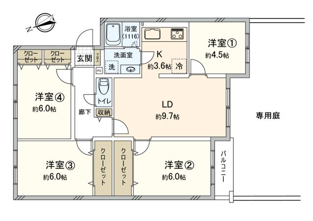 4LDK / 77.75㎡ / 1985年10月築 / 1階