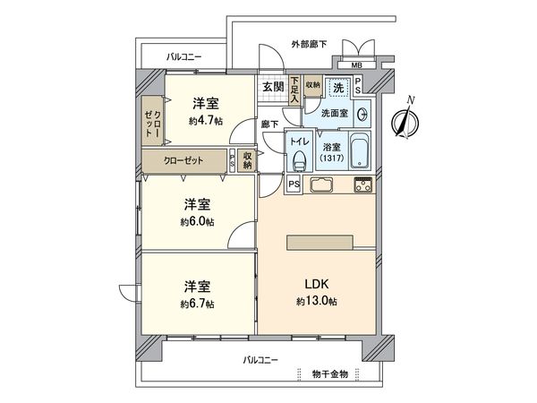 3LDK / 70.7㎡ / 1999年01月築 / 2階