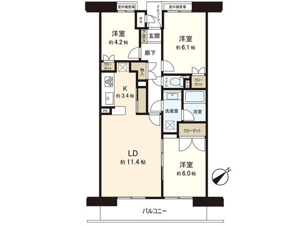 3LDK / 71.42㎡ / 1994年10月築 / 2階