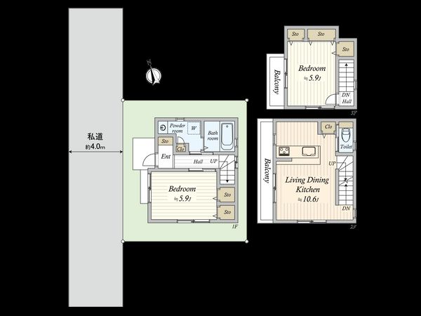 2SLDK / 建物67.71㎡ / 土地38.41㎡ / 2021年09月築