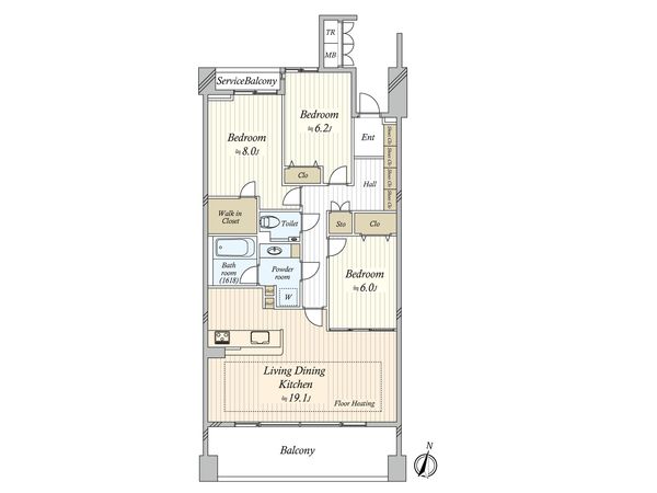 3LDK / 91.95㎡ / 2005年06月築 / 2階