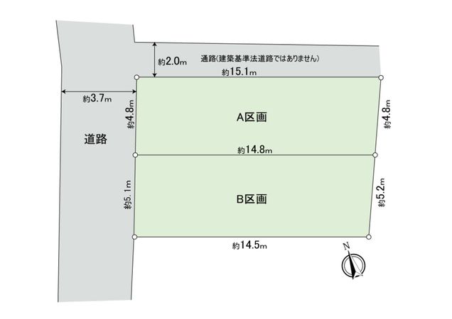 | 接道状況 | 西側: 約 3.7m (私道) |