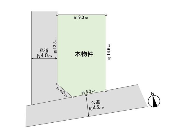 | 接道状況 | 南側: 約 4.2m (公道)、西側: 約 4m (私道) |