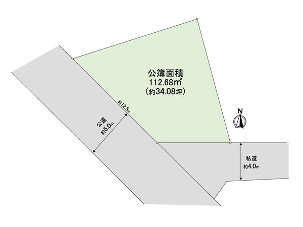 | 土地面積 | 112.68㎡(約34.08坪) ※別途私道約173㎡有 (共有持分 600/5240) |