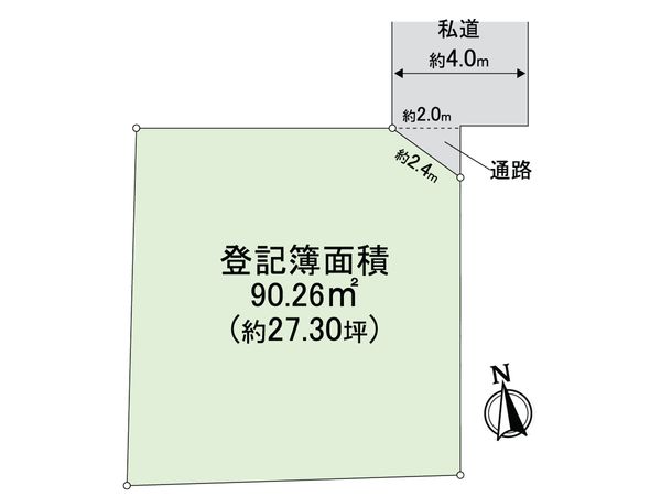 | 土地面積 | 90.26㎡(約27.3坪) ※別途私道約58㎡有 (共有持分 1/4) |