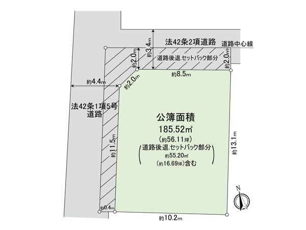 | 土地面積 | 185.52㎡(約56.11坪) ※セットバック約55.2㎡を含む |