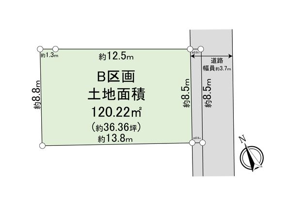 | 土地面積 | 120.22㎡(約36.36坪) ※別途私道約7.91㎡有 |
