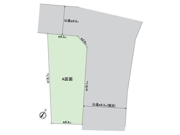| 接道状況 | 北東側: 約 8.3m (公道)、北西側: 約 6m (公道) |