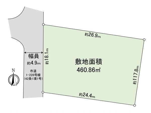 | 接道状況 | 西側: 約 4.9m (公道) |