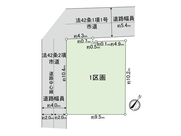 | 接道状況 | 北西側: 約 5.1m (公道)、南西側: 約 4m (公道) |
