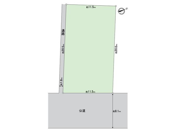 | 接道状況 | 南東側: 約 8.1m (公道)、南西側: 約 1.8m (公道) |