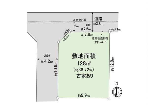 | 土地面積 | 128㎡(約38.72坪) ※セットバック約1.4㎡を含む |