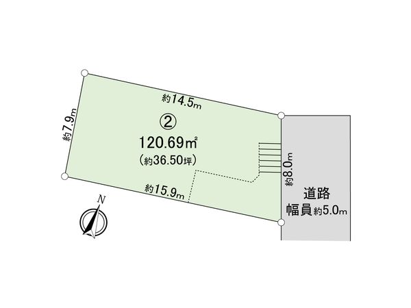 | 土地面積 | 120.69㎡(約36.5坪) ※別途私道約126.6㎡有 (共有持分 1/5) |