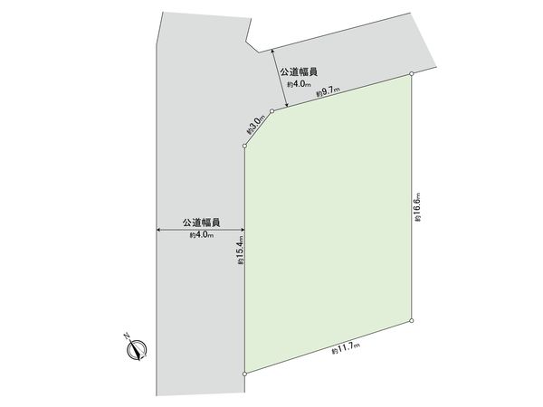 | 接道状況 | 北西側: 約 4m (公道)、北東側: 約 4m (公道) |