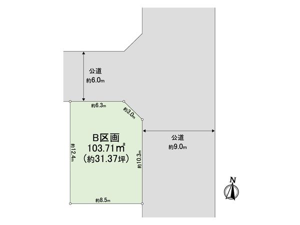 | 接道状況 | 東側: 約 9m (公道)、北側: 約 6m (公道) |