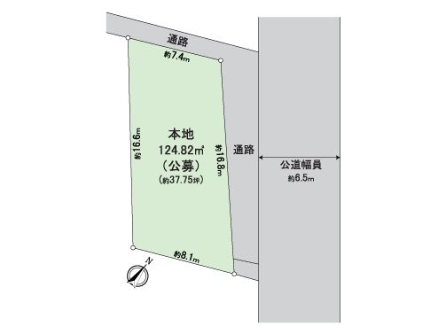 | 土地面積 | 124.82㎡(約37.75坪) ※別途私道約68.17㎡有 (共有持分 1/3) |