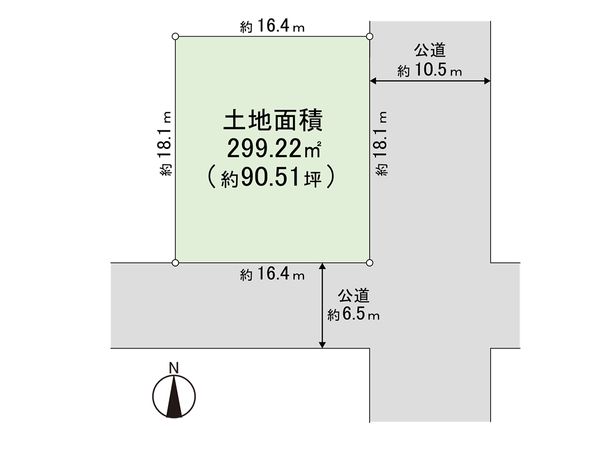 | 接道状況 | 東側: 約 10.5m (公道)、南側: 約 6.5m (公道) |