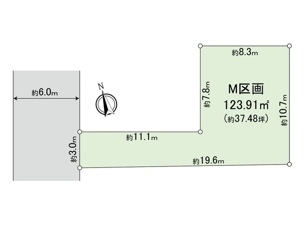 | 土地面積 | 123.91㎡(約37.48坪) ※路地状敷地部分約33.5㎡含む |
