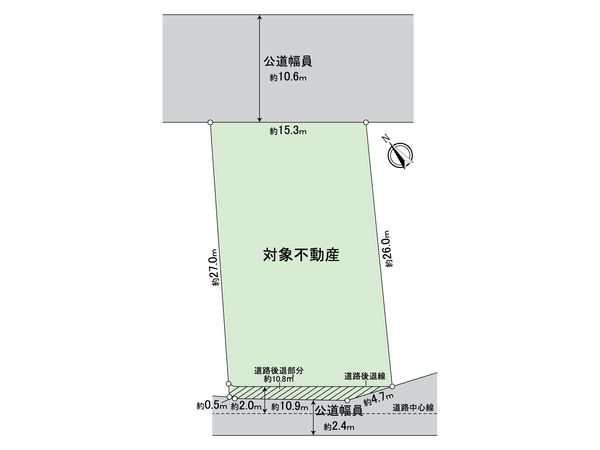 | 接道状況 | 北東側: 約 10.6m (公道)、南東側: 約 2.4m (公道) |