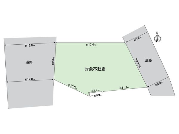| 接道状況 | 西側: 約 12m (公道)、東側: 約 6m (公道) |