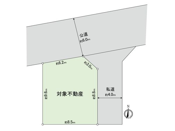 | 接道状況 | 北側: 約 6m (公道)、東側: 約 4m (私道) |