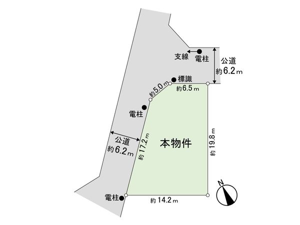 | 接道状況 | 北西側: 約 6.2m (公道)、北東側: 約 6.2m (公道) |