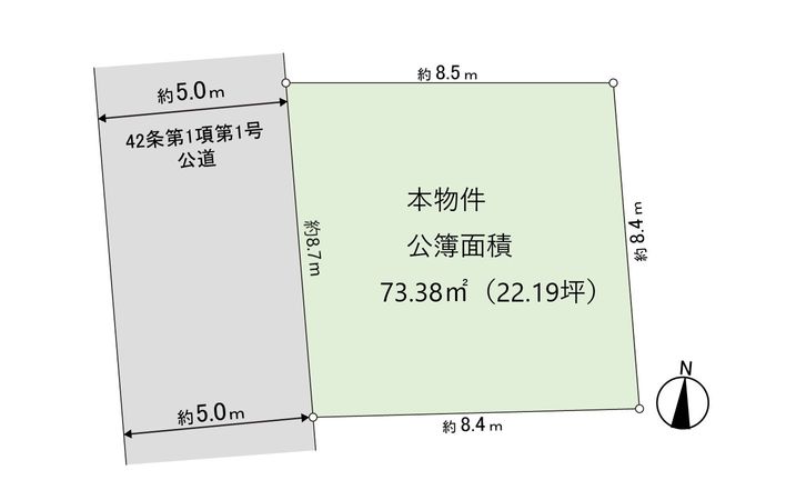 | 接道状況 | 西側: 約 5m (公道) |