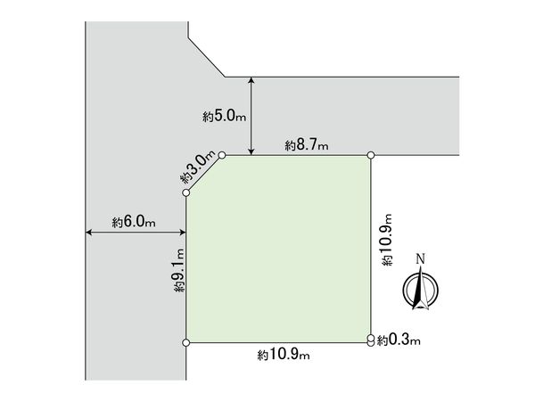 | 接道状況 | 西側: 約 6m (公道)、北側: 約 5m (公道) |