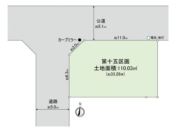 | 接道状況 | 北側: 約 5.1m (公道)、西側: 約 5m (公道) |