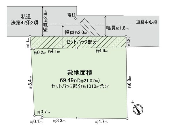 | 土地面積 | 69.49㎡(約21.02坪) ※セットバック約10.1㎡を含む |