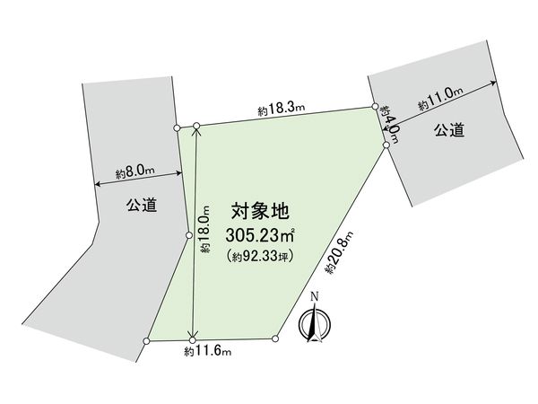 | 接道状況 | 北東側: 約 11m (公道)、西側: 約 8m (公道) |
