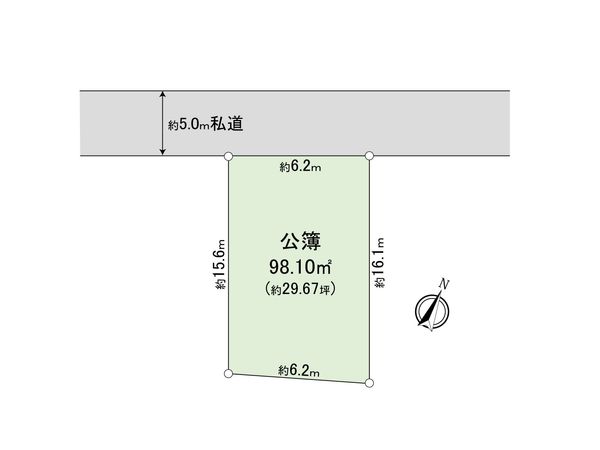 | 土地面積 | 98.1㎡(約29.67坪) ※別途私道約1119㎡有 (共有持分 2750/111988) |