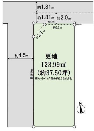 | 土地面積 | 123.99㎡(約37.5坪) ※セットバック約3.35㎡を含む |