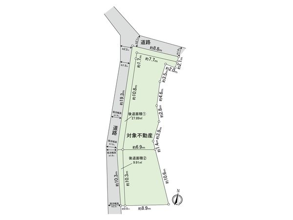| 接道状況 | 北東側: 約 1.8m (公道)、西側: 約 1.8m (公道) |