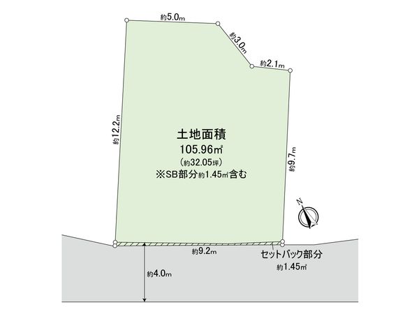 | 土地面積 | 105.96㎡(約32.05坪) ※セットバック約1.45㎡を含む |