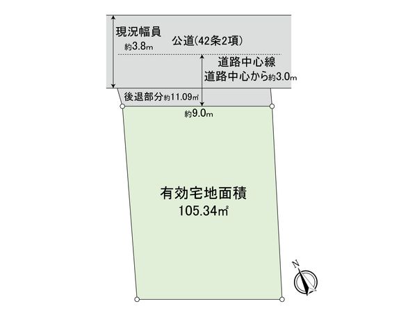 | 備考 | ※地区整備計画により、前面道路中心線から3m後退により、建ぺい率50%、容積率100%に緩和されます (2m後退のままで敷地面積116.43平米、40-80%も可能) ※敷地面積にはセットバック面積11.09平米を含みます |