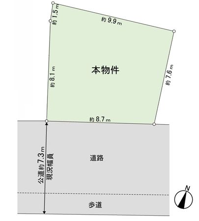 | 接道状況 | 南東側: 約 7.3m (公道) |
