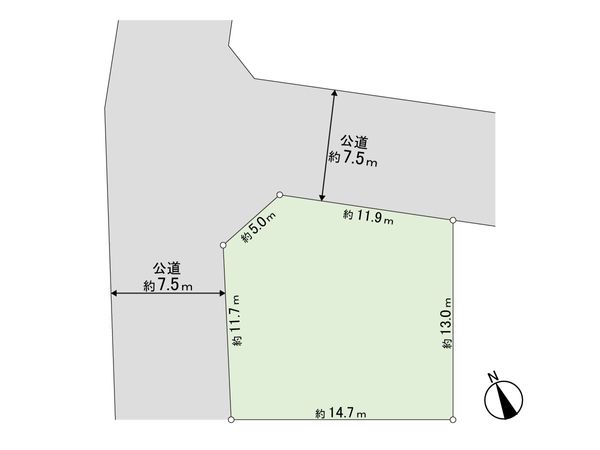 | 接道状況 | 北東側: 約 7.5m (公道)、北西側: 約 7.5m (公道) |