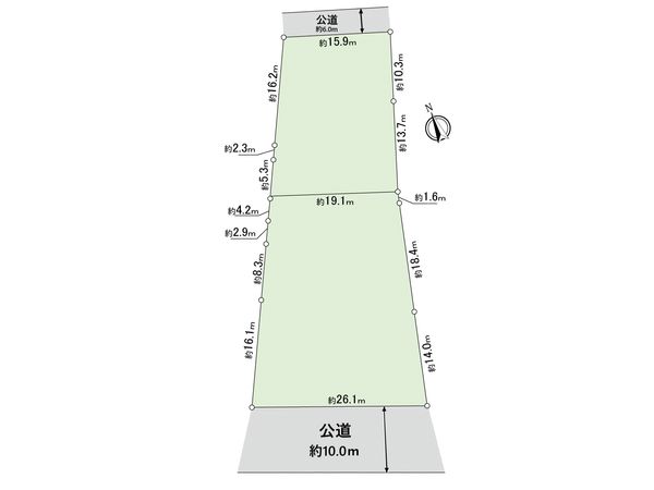 | 接道状況 | 南西側: 約 10m (公道)、北東側: 約 6m (公道) |